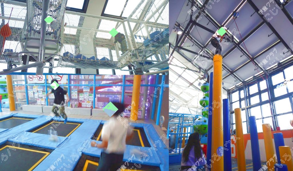 かなりスリリングなアスレチックやトランポリンでなどがあり